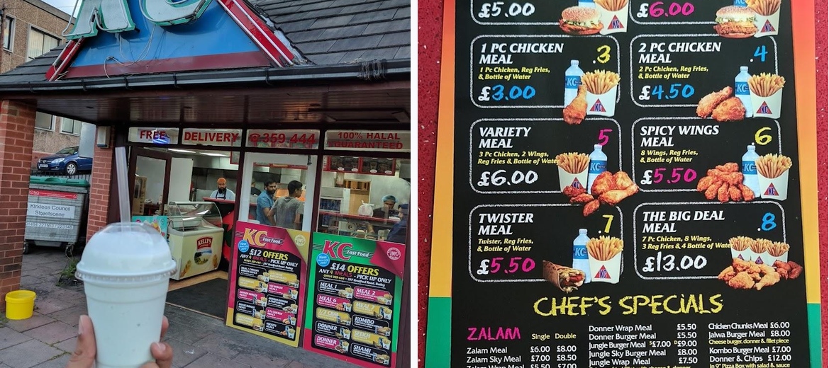 Welcome to KC Fast Food & Milkshakes, your go-to destination in Batley for delicious kebabs, juicy hamburgers, and delightful milkshakes! Conveniently located at 297 Bradford Rd, we pride ourselves on offering a diverse menu perfect for a quick bite, late-night cravings, or family dinners. Enjoy our halal options in a casual atmosphere, with the convenience of dine-in, takeaway, and delivery services. Our kids' menu and wheelchair-accessible amenities cater to everyone. Indulge in our famous desserts to complete your meal, all at affordable prices ranging from £1 to £10. Join us today for a satisfying feast!KC Fast Food & Milkshakes delights locals with its superb quality food, especially the chicken and chips meal, which comes piping hot every time. Customers rave about the wide variety of burgers, from the classic cheese burger to unique jungle burgers. The friendly staff enhance the experience, always ready to assist with a smile. The convenient takeaway option appeals to busy diners, allowing them to enjoy delicious meals on the go. Furthermore, the late-night food service adds to its charm, making it a popular choice after hours.